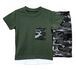 Детский трикотажный костюм (футболка + шорты) для мальчика; футболка с накладным карманчиком и контрастной вставкой понизу.