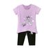 Детский трикотажный костюм для девочки, состоящий из футболки и лосин длиной 3/4, выполнен в ярких цветах с принтом и с блестками в виде КОШЕЧКИ, что делает этот комплект модным и стильным.