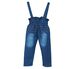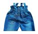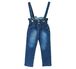 Детские джинсы с высокой посадкой и лямками, для девочки. Пояс с широкой резинкой, лямки с регулировкой по длине, шлевки. Модель выполнена из хлопкового денима с добавлением эластана, что позволяет чувствовать себя удобно и комфортно. Оформление металлическими фигурными пуговицами и четырьмя карманами. Потертости делают джинсы более стильными и модными.