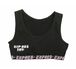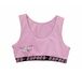 Внутренние мягкие швы обеспечивают комфорт при носке, не вызывая дискомфорта. Широкие лямки с резинкой по краю гарантируют надежную поддержку и удобство. Нижняя резинка контрастного цвета оформлена текстовым принтом, что добавляет стильный акцент.