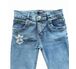 Джинсы оформлены компьютерной вышивкой с цветком, что придает им неповторимый и стильный вид,