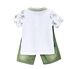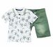 Комплект выполнен в контрастных цветах, что делает его стильным и модным выбором для вашего мальчика. Принт на футболке добавляет оригинальности и индивидуальности.