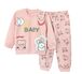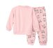 Детский трикотажный костюм для девочки (толстовка + брючки), оформленный принтом со зверюшками и апликацией (травка). Толстовка и брючки с манжетом.