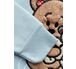Модель выполнена в очаровательном небесно-голубом цвете. Главный акцент — объемная меховая аппликация с изображением милого мишки, дополненная сверкающими паетками. Девочка будет в восторге от такого друга на одежде! Паетки добавят нотку волшебства и игривости.