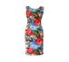 Модное платье для летнего гардероба с ярким цветочным принтом, модель облегающего силуэта из ткани - жатка, в левом боковом шве застежка-молния 38см, округлый вырез дополнен дизайнерской металлической пластинкой.