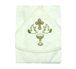 Детское махровое полотенце с капюшоном для малышей от 0 до 12 месяцев для крещения, в комплекте есть руковичка; приятная на ощупь махровая ткань с мягким ворсом, хорошо впитывает влагу, окрас ткани устойчивый; оформление золотистой и серебрянной вышивкой (люрекс); края обработаны трикотажной бейкой; индивидуальная фирменная упаковка.